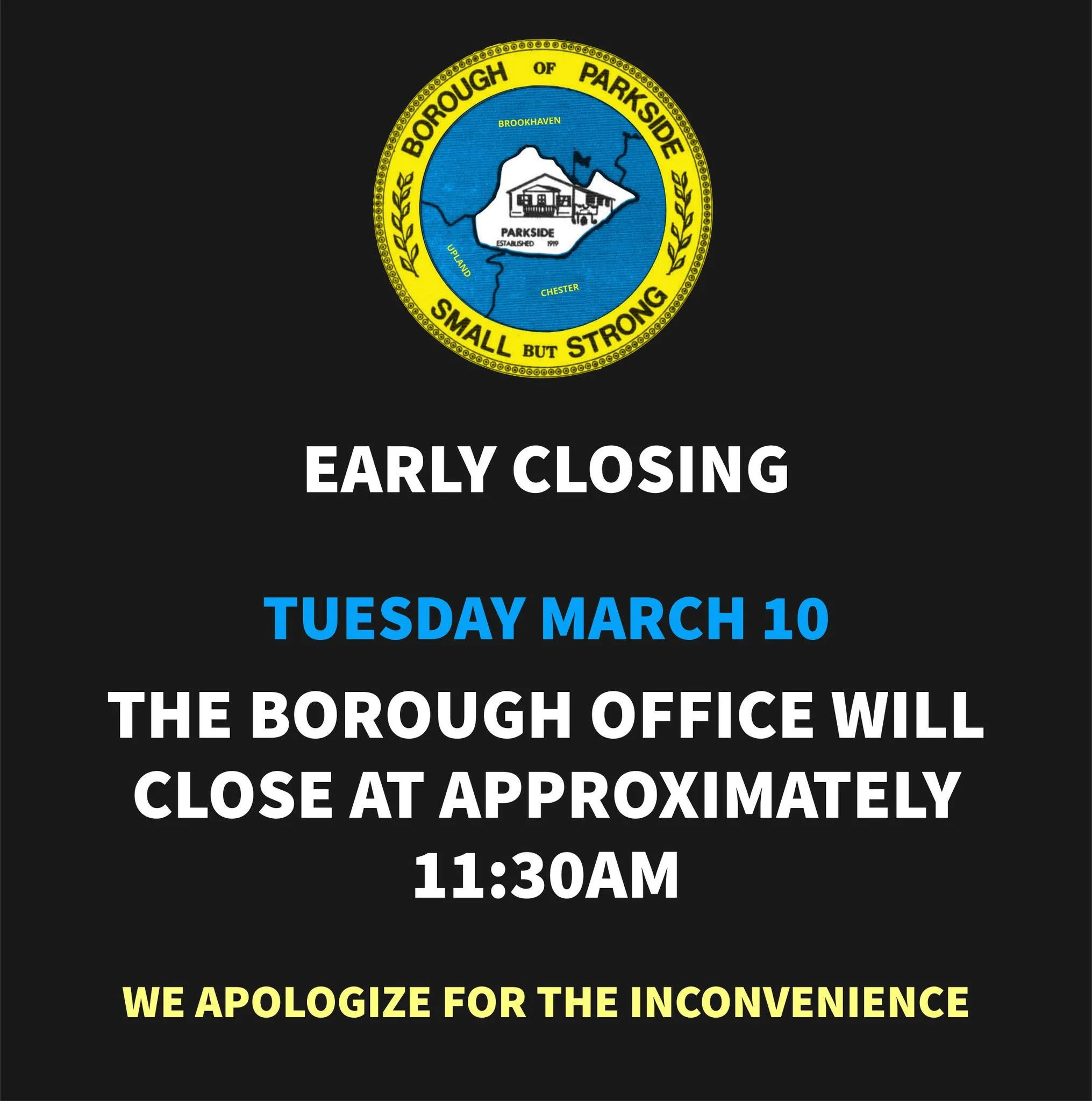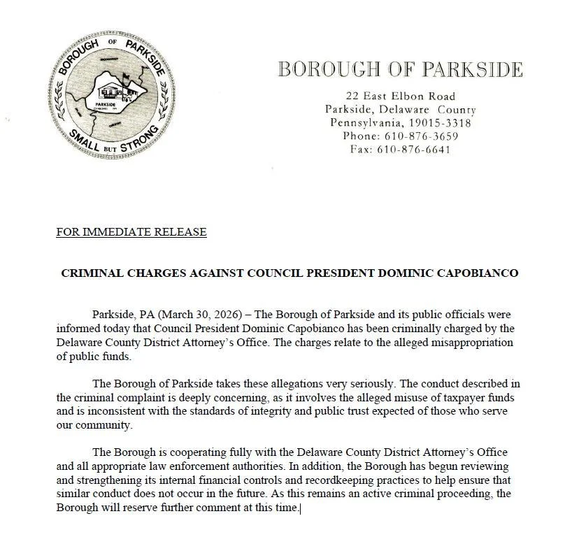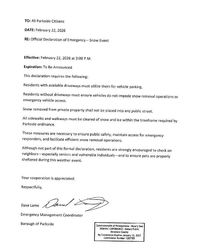 The Borough of Parkside remains committed to providing professional and consistent law enforcement services.